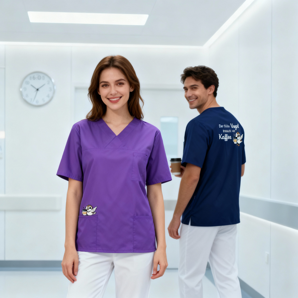 Kasacks werden von Beschäftigten im Bereich der Pflege und Medizin getragen. Kasacks zählen zu den standardisierten Oberteilen in der medizinischen Berufsbekleidung